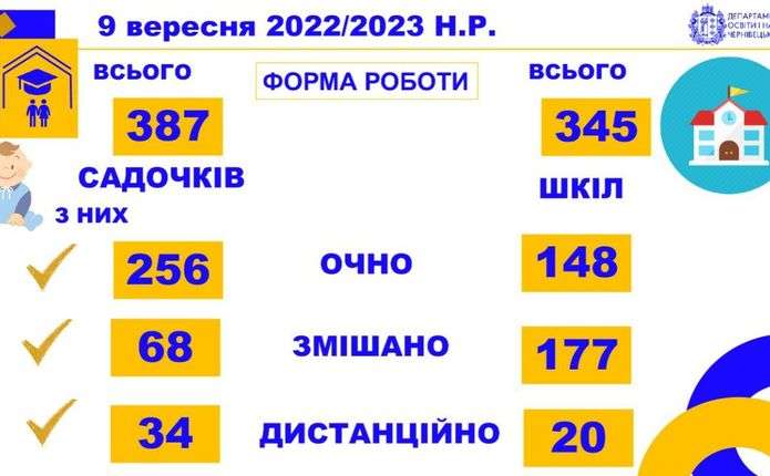 Станом на 9 вересня із 345 шкіл області за очною формою навчання працюють 148, змішаною – 177, а дистанційною – 20.