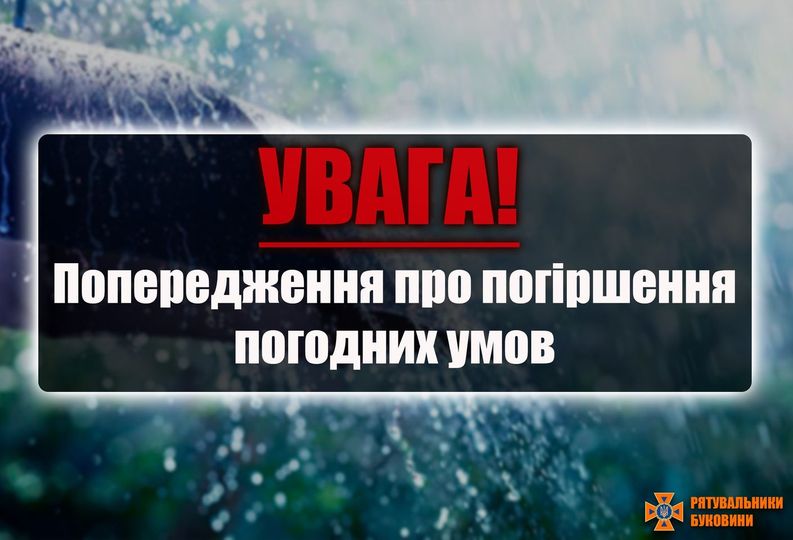 Головне управління ДСНС України у Чернівецькій області попереджає про погіршення погодних умов.