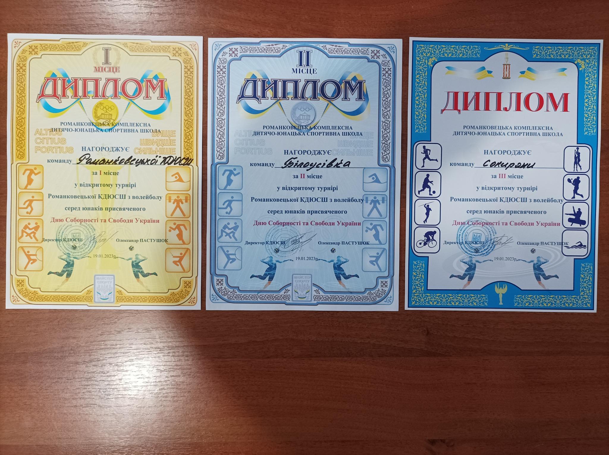 19 січня в приміщенні Романковецької КДЮСШ відбувся відкритий турнір з волейболу серед юнаків присвячений Дню Соборності та Свободи України.