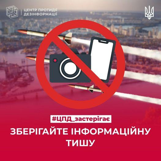 ЦПЗ закликає не поширювати жодної інформації про роботу підрозділів Протиповітряної оборони!Дотримуйтеся правил оприлюднення інформації:Не транслюйте переміщення військової технікиНе знімайте місця обстрілів та роботу ППООчікуйте на офіційні коментарі військового командуванняРетельно перевіряйте інформацію в офіційних джерелахНе ставайте інструментом у руках ворога! Працюйте на державу, а не проти неї!