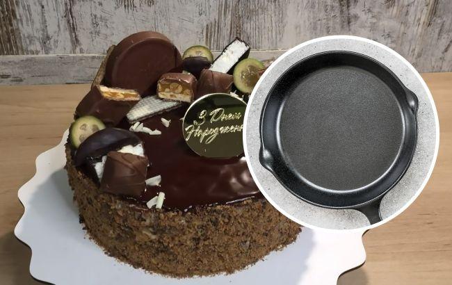 Святковий шоколадний торт на сковорідці без духовки та замісу: рецепт
