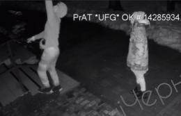 На записі видно, як наприкінці березня до під’їзду підходить чоловік старшого віку у смугастих штанях. Він сторожко озирається, чи нікого немає довкола, викручує кілька лампочок, складає їх у кишеню і поспішно йде геть.