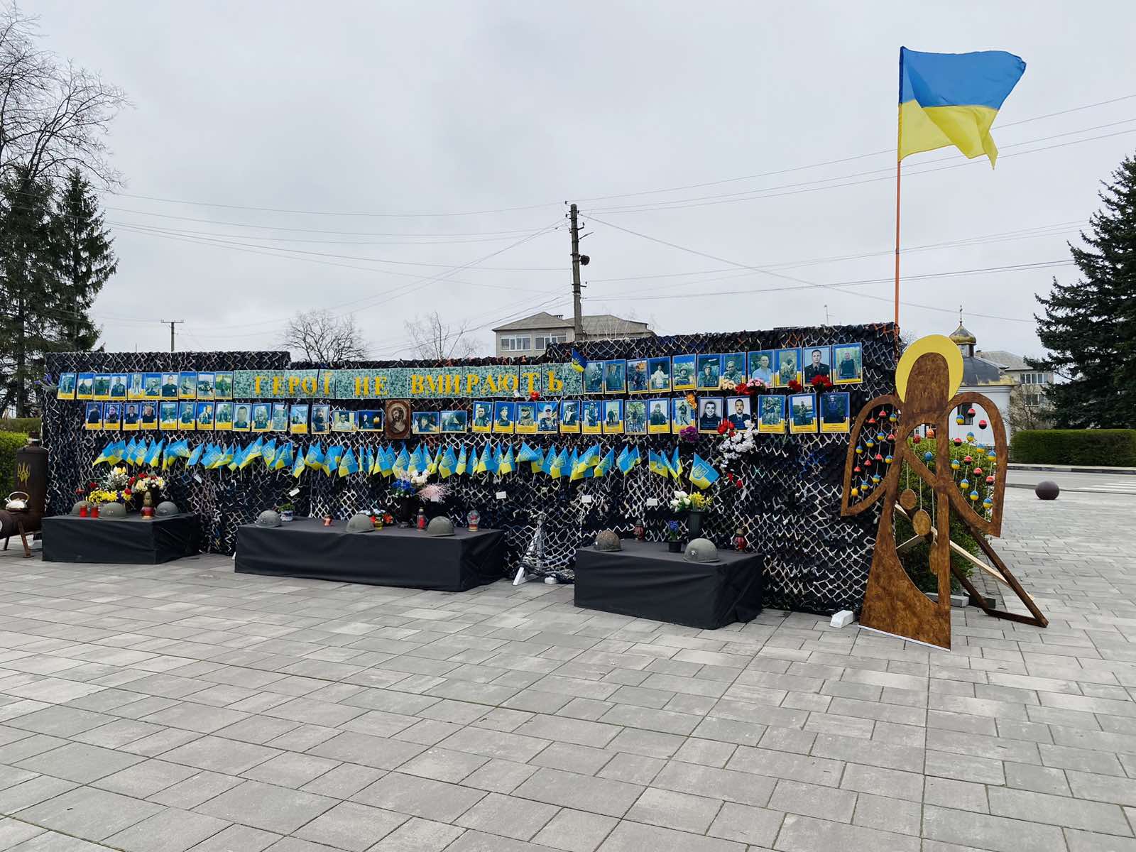 Янголи – як символ світла та надії на Перемогу розміщені в самому серці міста Сокиряни – на території освітньо-мистецького центру та біля символічної експозиції, присвяченої загиблим Героям російсько-української війни. Жовто-блакитні янголи виражають прагнення українського народу до волі та віру в Перемогу.
