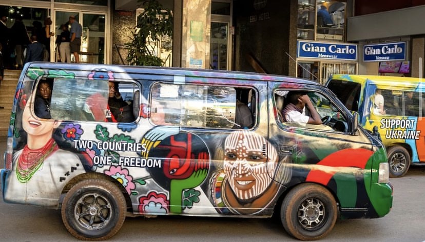 «Щодо моєї безпосередньої участи в проєкті, то, крім спілкування й донесення нашого меседжу, я спільно з місцевим художником Моха створили декілька матату. Це місцевий і дуже колоритний вид громадського транспорту. Вони курсують у найвіддаленіші райони міста, де російська пропаганда особливо вкорінилася.Також ми створили найбільший у Найробі мурал», — розповідає Аліна.