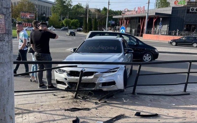 Дрифтував на “кільці”: у Чернівцях біля ТЦ “Майдан” автомобіль протаранив огорожу – відео