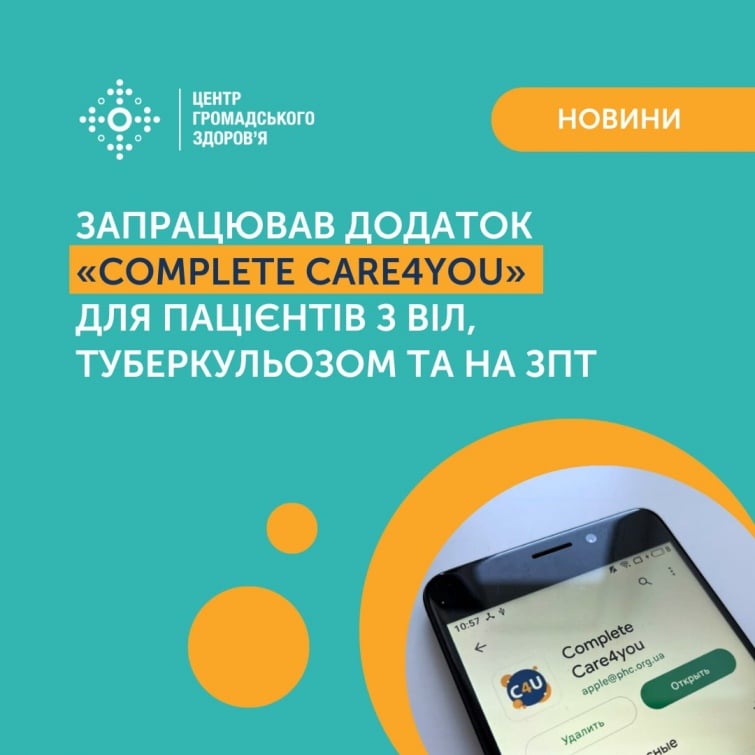 Міністерство охорони здоров’я запустило в Україні застосунок «Complete Care4you» для пацієнтів із ВІЛ, туберкульозом і замісною підтримувальною терапією.