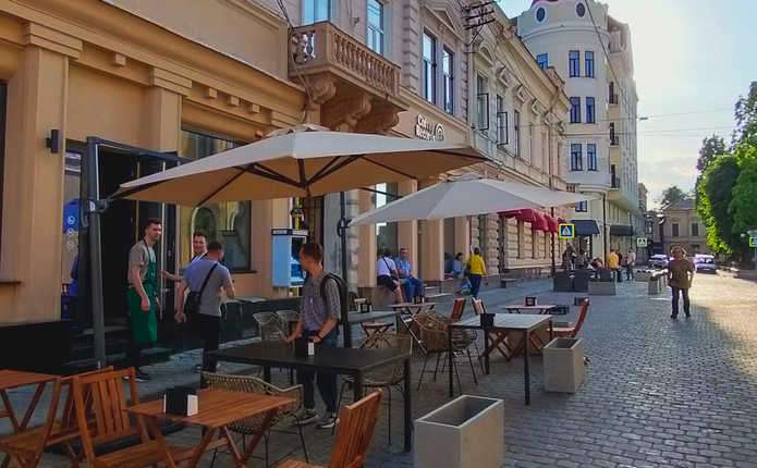 У Чернівцях вулиця Чайковського стала пішохідною і на ній відкрили літні майданчики. Так, три заклади отримали дозвіл на встановлення літніх майданчиків. Про це на фейсбук-сторінці повідомила ГО “NE:Urban”.
