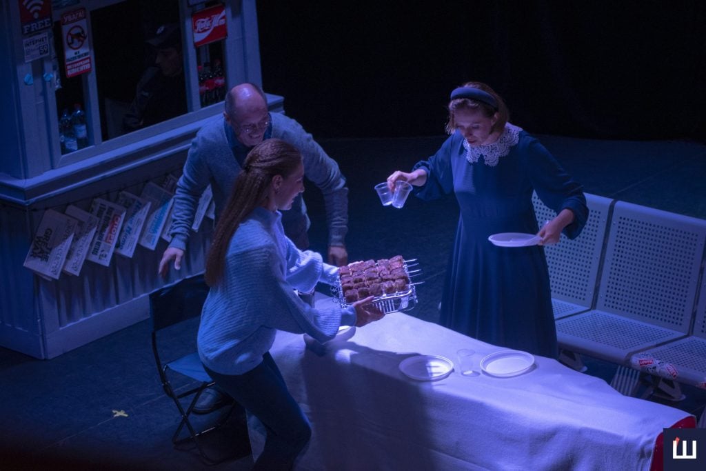 «Двоє наших акторів із невеликої трупи зараз служать. Інколи вони отримують відпустку, і ми разом із ними можемо зіграти у виставах, які в нас залишилися, зокрема і сьогоднішню п’єсу. Вона є в нас першою після початку війни», — ділиться Володимир Петренко.