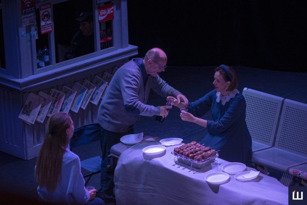 «Одного з персонажів нашої вистави звали Володимир Алєксєїч. За сюжетом це людина, яка допомагає мені влаштуватися на роботу за кордоном. Я часто плутав його з нашим режисером — Володимиром Євгеновичем», — каже Володимир Володимиров.