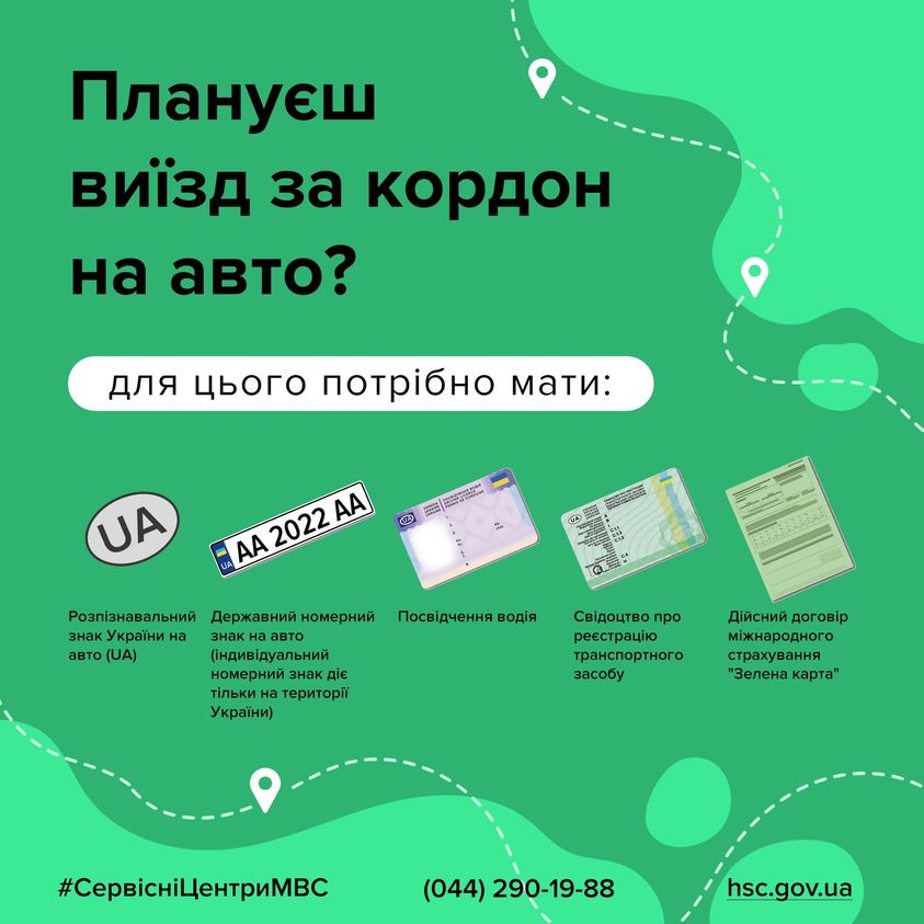 Головний сервісний центр МВС інформує: при перетині державного кордону на авто при собі потрібно мати:
