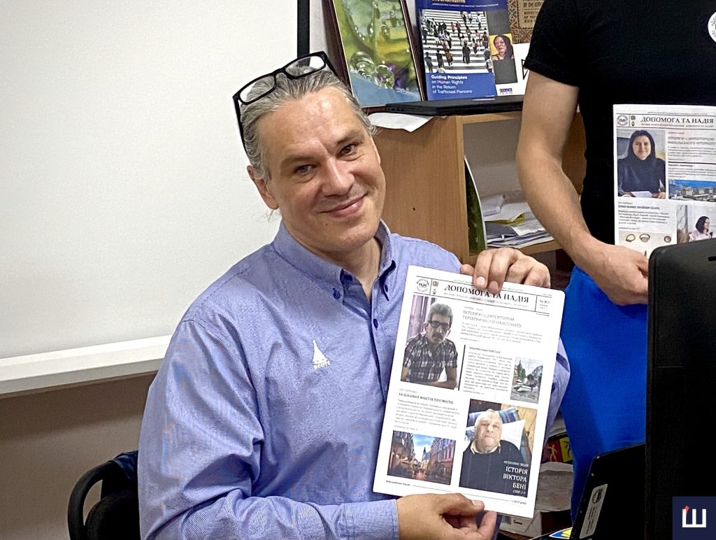 Троє вимушених переселенців на початку повномасштабної війни знайшли прихисток у Чернівецькому обласному центрі соціально-психологічної допомоги у Садгорі. Тут вони вирішили заснувати громадську організацію «Допомога та Надія», щоб допомагати місцевим ВПО. Цьогоріч у них виникла ідея створити безкоштовний інформаційний вісник – газету для місцевих переселенців, яку вони друкують та видають власними силами.