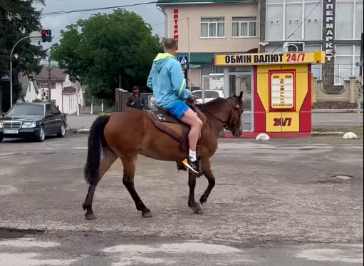 «Хто в Кіцмані на коні»: спортсмен Іван Гешко проїхався верхи рідним містом – відео