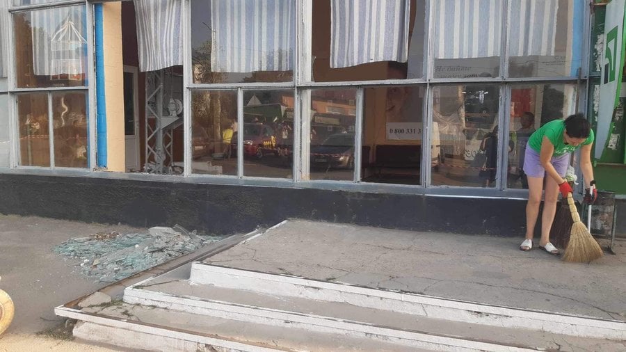 Крім цього зазнав пошкоджень внаслідок вибухової хвилі продуктовий магазин та універмаг. Там також вибиті вікна.