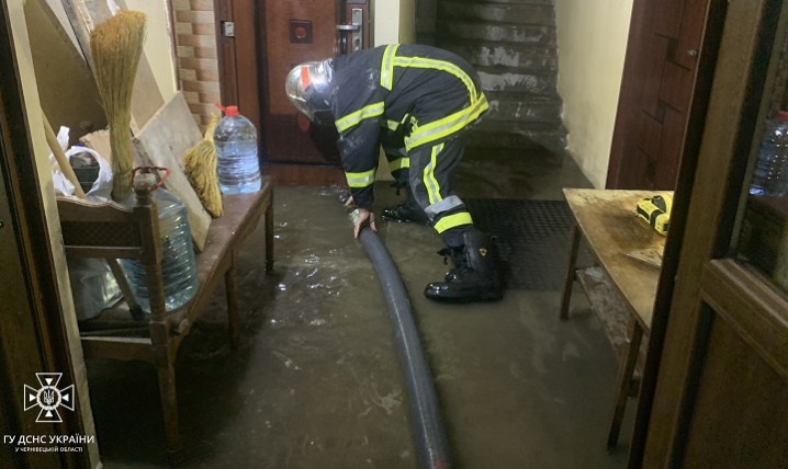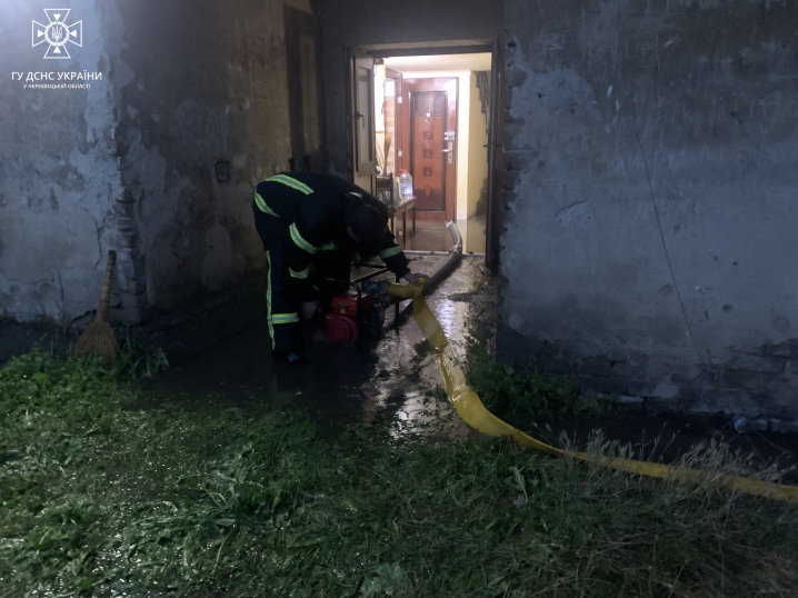 “Внаслідок погіршення погодних умов у вигляді рясного дощу в місті Чернівці на вулицях Лук’яна Кобилиці та Пауля Целана підтопило квартири та підвали житлових будинків. Для допомоги населенню у відкачуванні води направлено особовий склад 1 державної пожежно-рятувальної частини. Рятувальники за допомогою пожежних мотопомп допомагають людям ліквідовувати наслідки негоди”, – додають рятувальники.