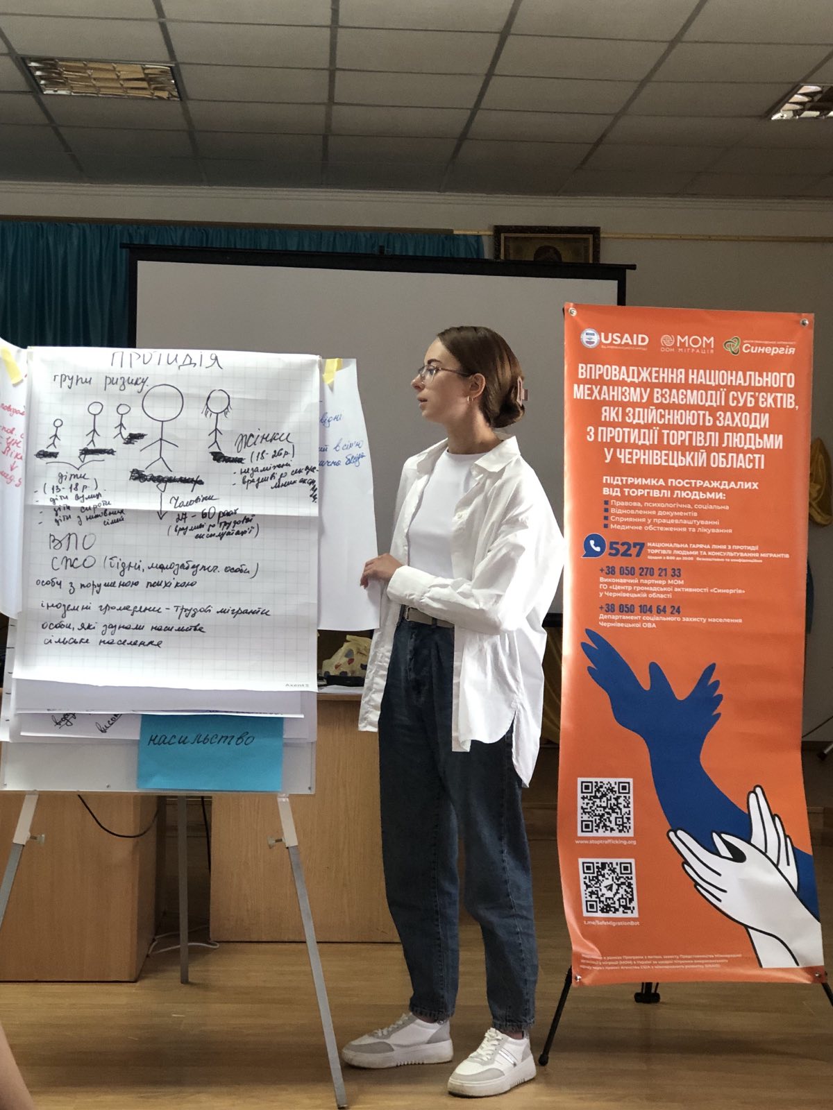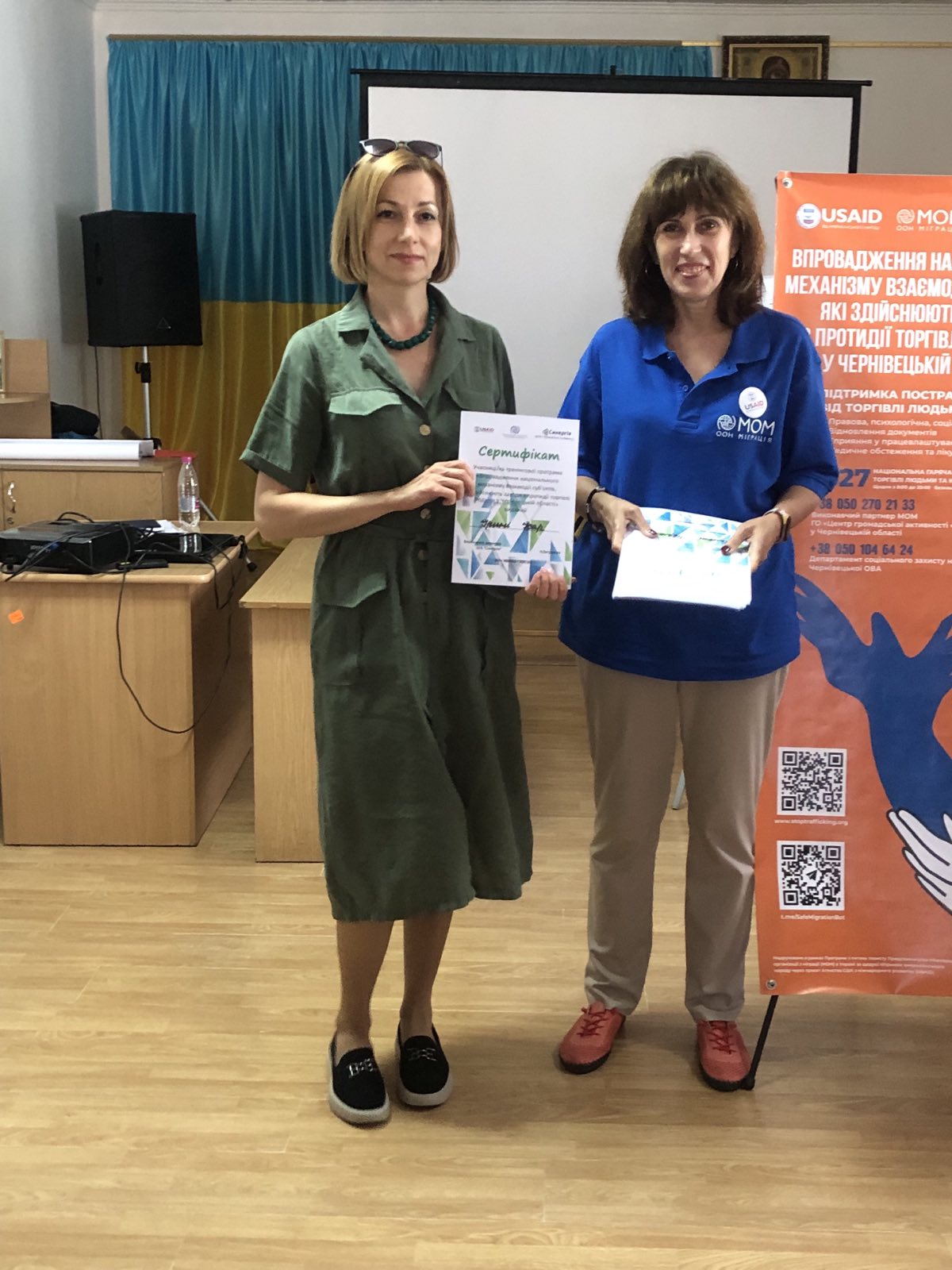 Тренінг відбувався в межах проекту «Впровадження національного механізму взаємодії суб’єктів, які здійснюють заходи в сфері протидії торгівлі людьми у Чернівецькій області» (виконавець – ГО «Центр громадської активності «Синергія»), за сприяння представництва Міжнародної Організації з Міграції (МОМ) в Україні та за фінансової підтримки USAID.