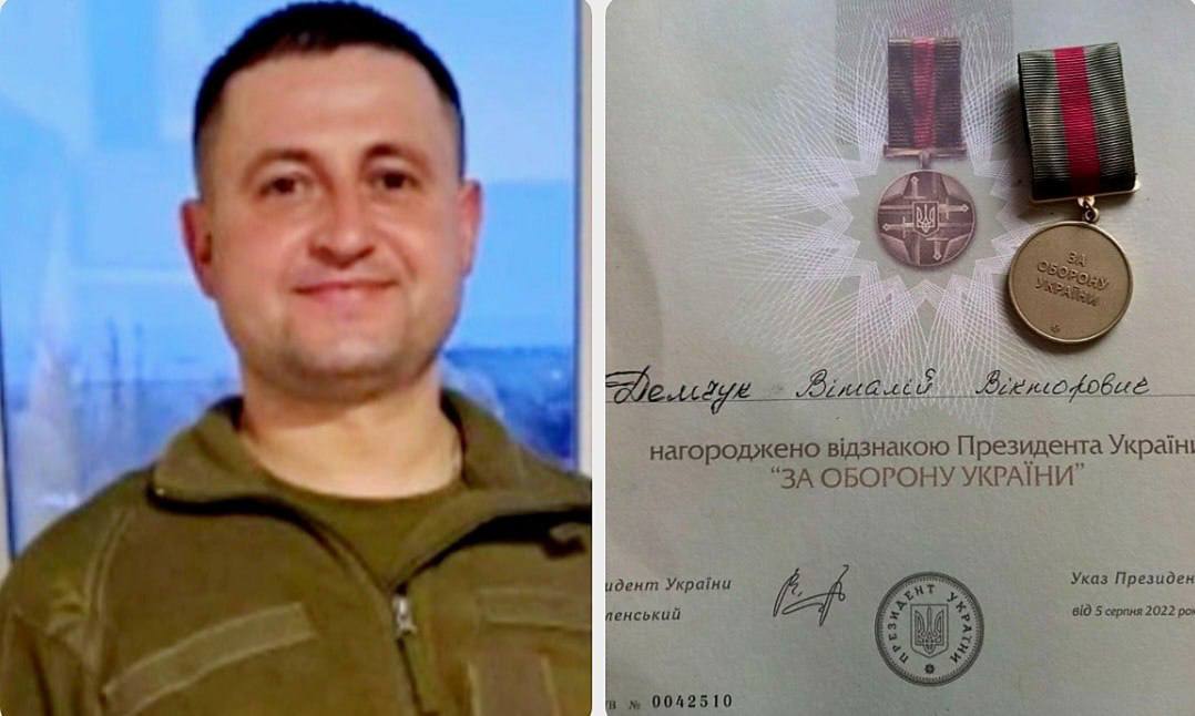 Відзнаку президента «За оборону України» отримав житель села Ревного Віталій Демчук.