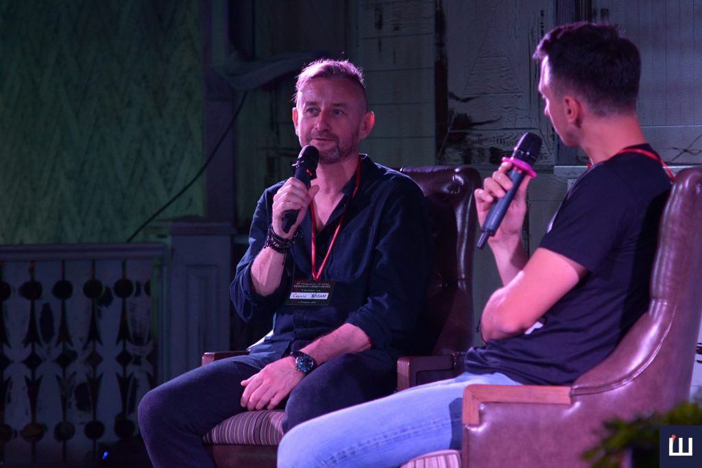 В останній день міжнародних поетичних читань «Meridian Czernowitz» відбулася розмова Сергій Жадана та Сергія Стаховського «Війна. Культура. Спорт. Вино». Сергій Стаховський – один із найкращих у минулому український тенісист, перша ракетка України. Після початку повномасштабного вторгнення він пішов до війська, де проходить службу в складі групи мінометної підтримки Нацгвардії. Брав участь у боях за Бахмут, нещодавно повернувся із Запорізького напрямку.