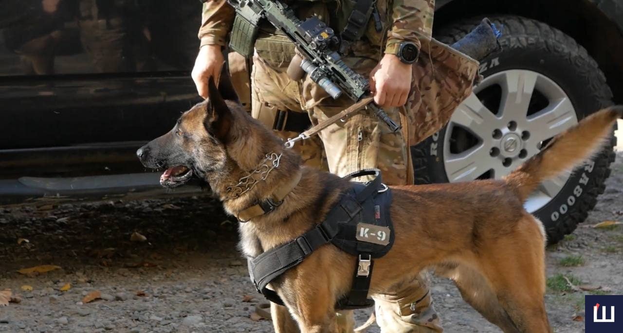 «Собаки спеціалізуються на пошуку, затриманні, виявленні фігурантів – людей, які вчинили кримінальні злочини. У нас два собаки: одному – два роки, іншому – майже п’ять. Тренувальний процес для них почався з дня, коли ми взяли собак на поруки», — каже боєць спецпідрозділу «Корд».