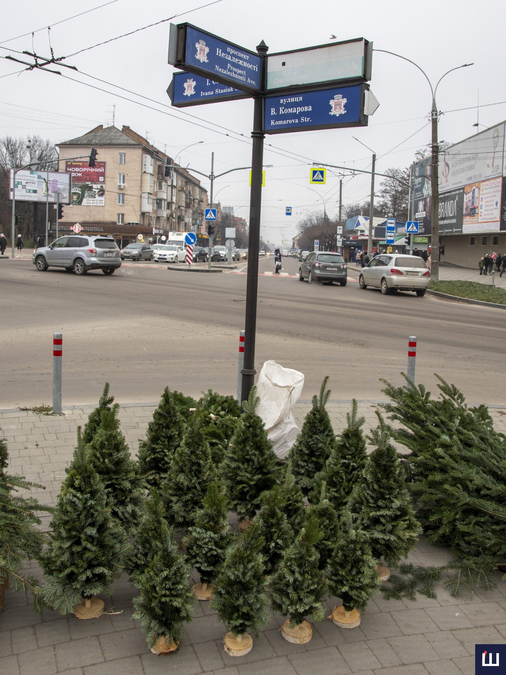 На проспекті Незалежности можна придбати хвойні композиції. На гілочках є офіційні штрих-коди. Також є віночки з хвої. Ціни в середньому коливаються від 50 до 100 грн.
