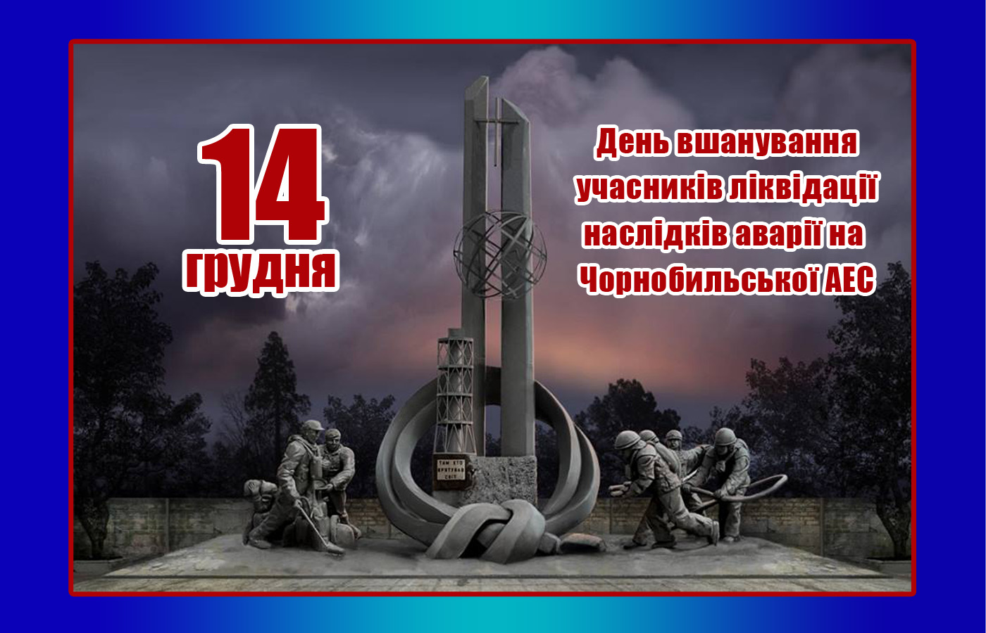 14 грудня ми з повагою та вдячністю вшановуємо людей, які свого часу взяли активну участь у приборканні атомного лиха, яке раптово трапилось у 1986 році.