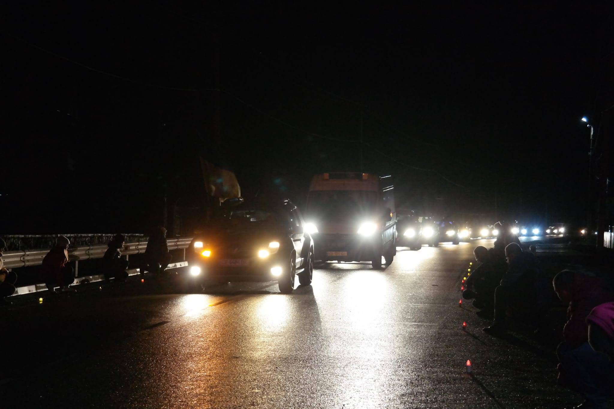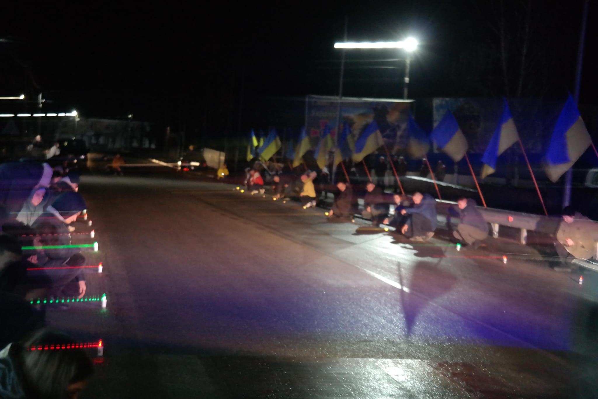 Жителі громади зустріли воїна на колінах… З національною символікою та лампадками…