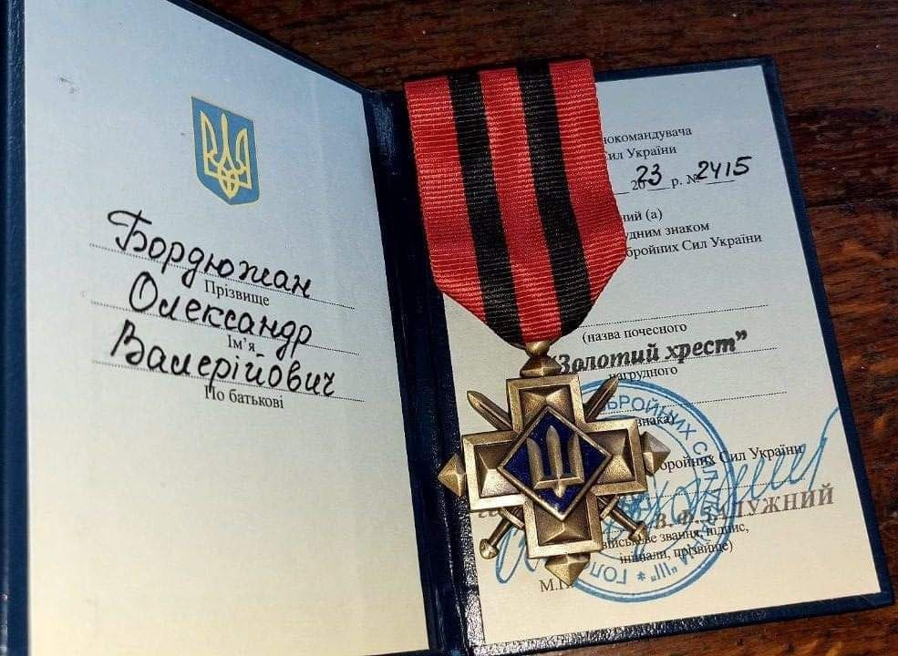 Буковинського військового Олександра Бордюжана із села Вовчинець Кельменецької громади нагородили відзнакою «Золотий хрест» від Головнокомандувача Збройних сил України Валерія Залужного.