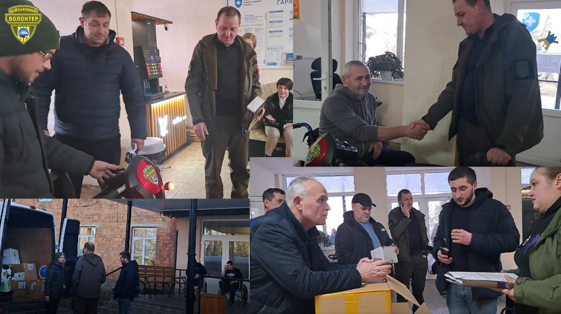 Цього разу привезли перевязувальні матеріали, пластирі, сітки для перевязок, тренажер для ніг та головним вантажем став електричний візок подарований особисто захиснику Михайлу. Людина до останнього не вірила що зможе отримати електричний візок безкоштовно та побачивши обіцяне волонтерами чоловік не аби як зрадів. Також молодому захиснику Артему волонтери подарували новий, звичайний інвалідний візок який після реабілітації військовий забере додому.
