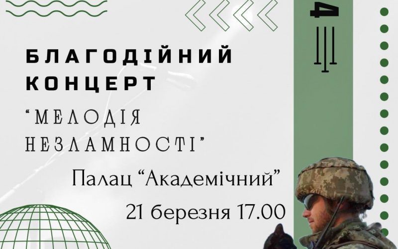 У четвер, 21 березня, о 17:00 у палаці “Академічному” відбудеться благодійний концерт “Мелодія Незламності”.