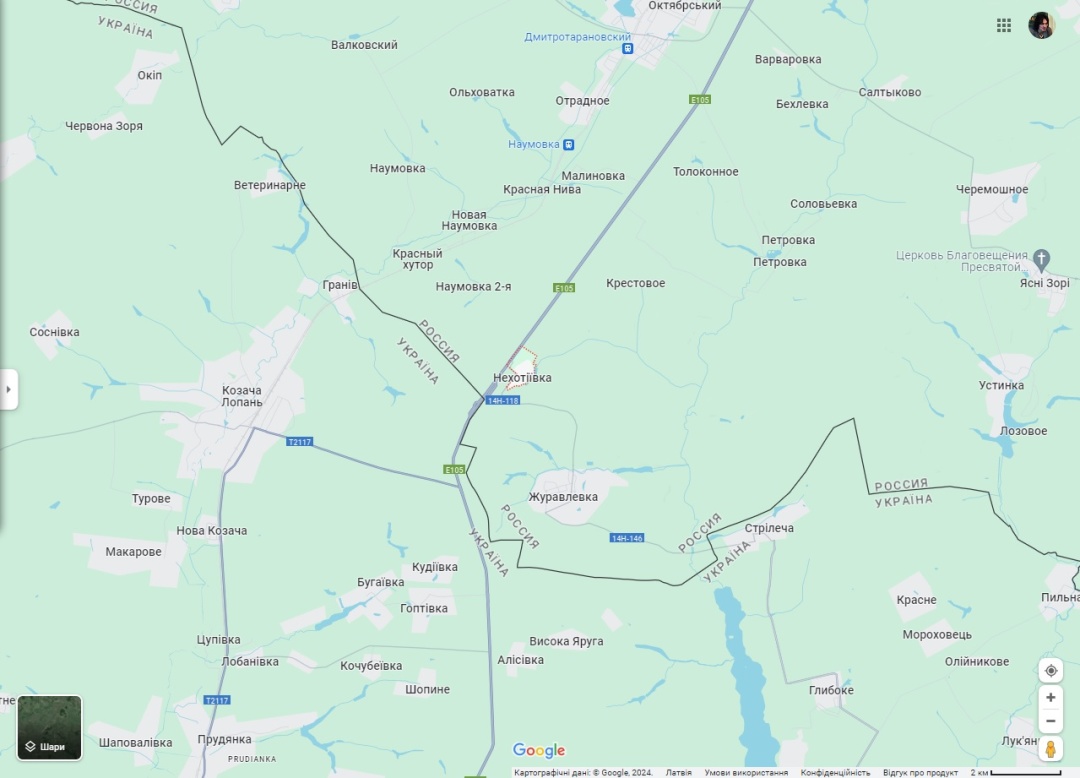 А тепер почитаємо Телеграм-канали Легіону «Свобода Росії», Російського добровольчого корпусу та Сибірського батальйону. З інформації, яка міститься в них, бачимо, що було проникнення в Тьоткіно (та підрив там трьох складів б/к), в Козинку, а також в селище Горьковський (це в двох кілометрах від кордону з боку Одноробівки в напрямку Головчиного). Яка ситуація наразі в цих населених пунктах, – невідомо – «туман війни»: можливо, частковий контроль, бої, входження та виходи. Інші пересування бійців ЛСР-РДК-СБ подані без локалізацій, тому встановити, де вони відбуваються, неможливо.