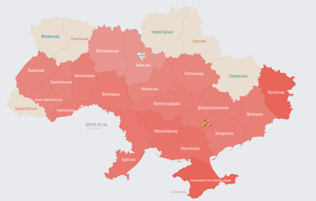 Як повідомляв Укрінформ, 21 березня зенітні ракетні підрозділи Повітряних сил ЗСУ і мобільні вогневі групи Сил оборони України знищили дві балістичні і 29 крилатих російських ракет.