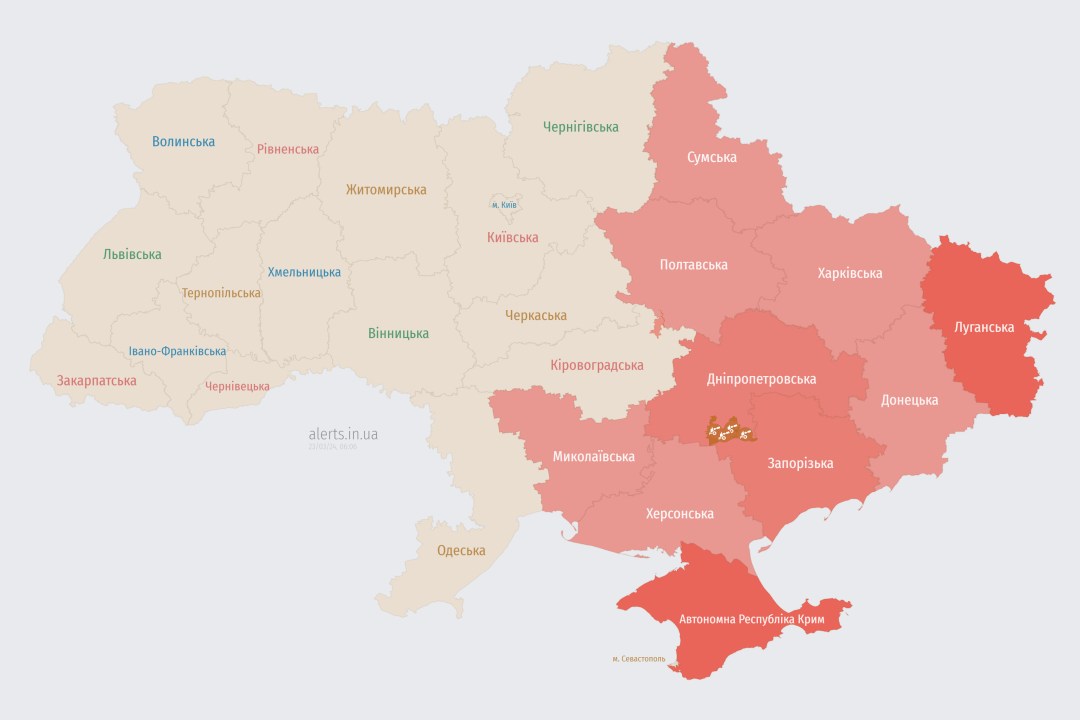 У багатьох областях було оголошено повітряну тривогу.