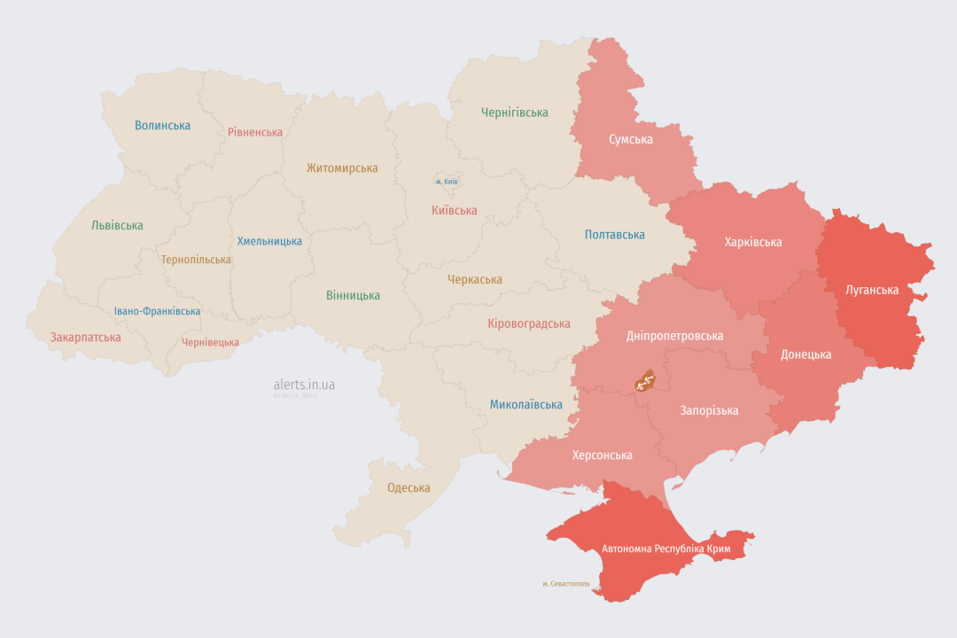 У низці областей, у тому числі на Дніпропетровщині оголошено повітряну тривогу.