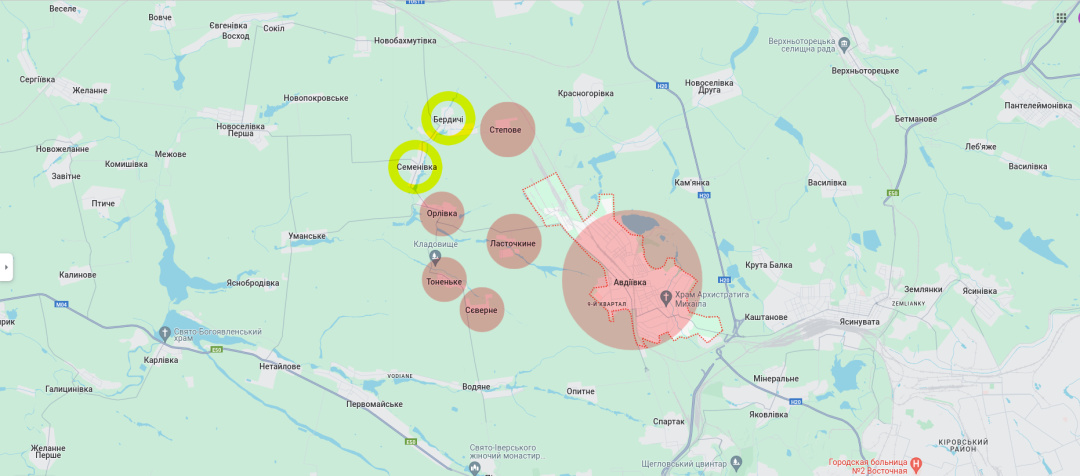 Більш широке коло — це Бердичі, Семенівка, Орлівка та Тоненьке, де розташовані ставки та невеликі річки, які зручно обороняти. Окупанти прорвали й цю лінію. Тоненьке й Орлівку росіяни захопили. ЗСУ відійшли західніше — до сіл Уманське, Яснобродівка, Нейталове та Невельське.