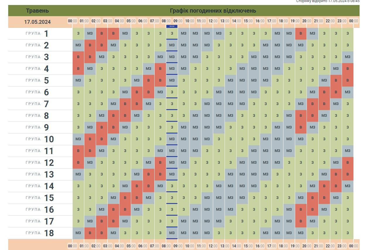 АТ «Чернівціобленерго» оприлюднило графіки вимкнення світла на 17 травня.