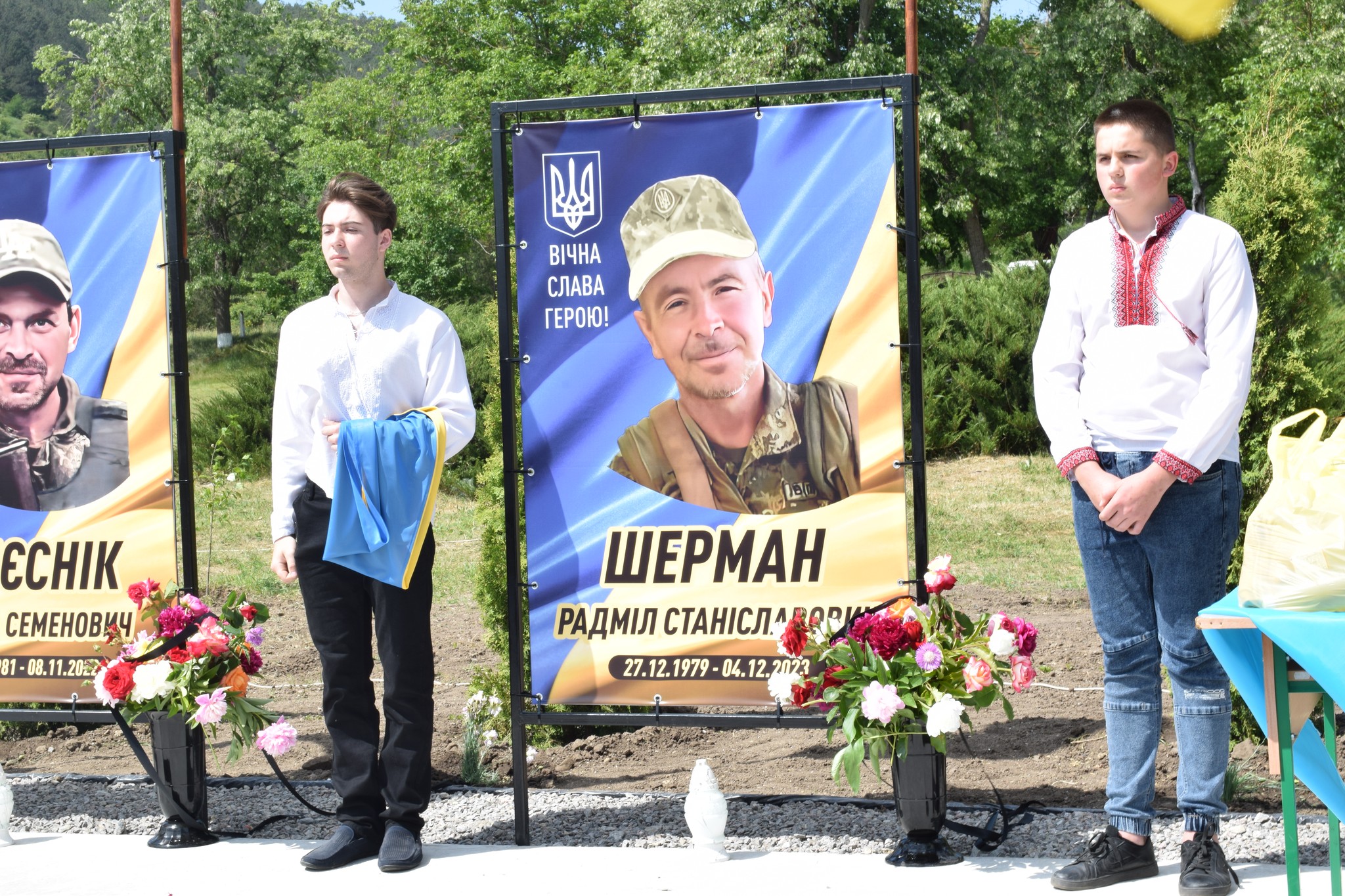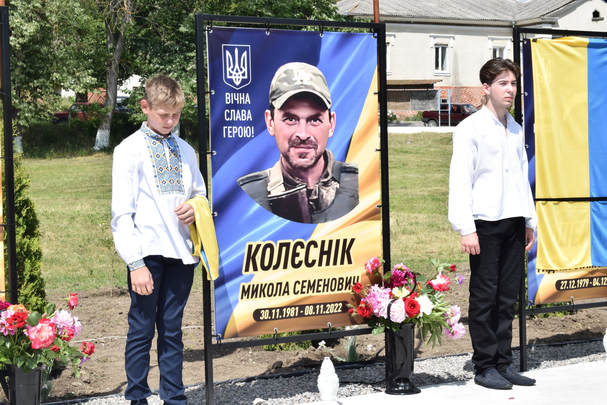 У селі Ожеве банери із портретами загиблих Героїв відкрили рідні воїнів.