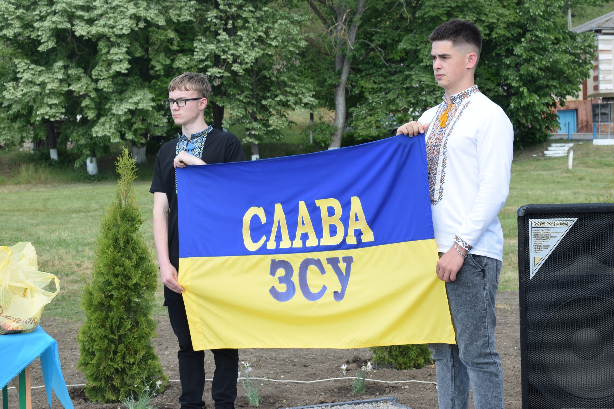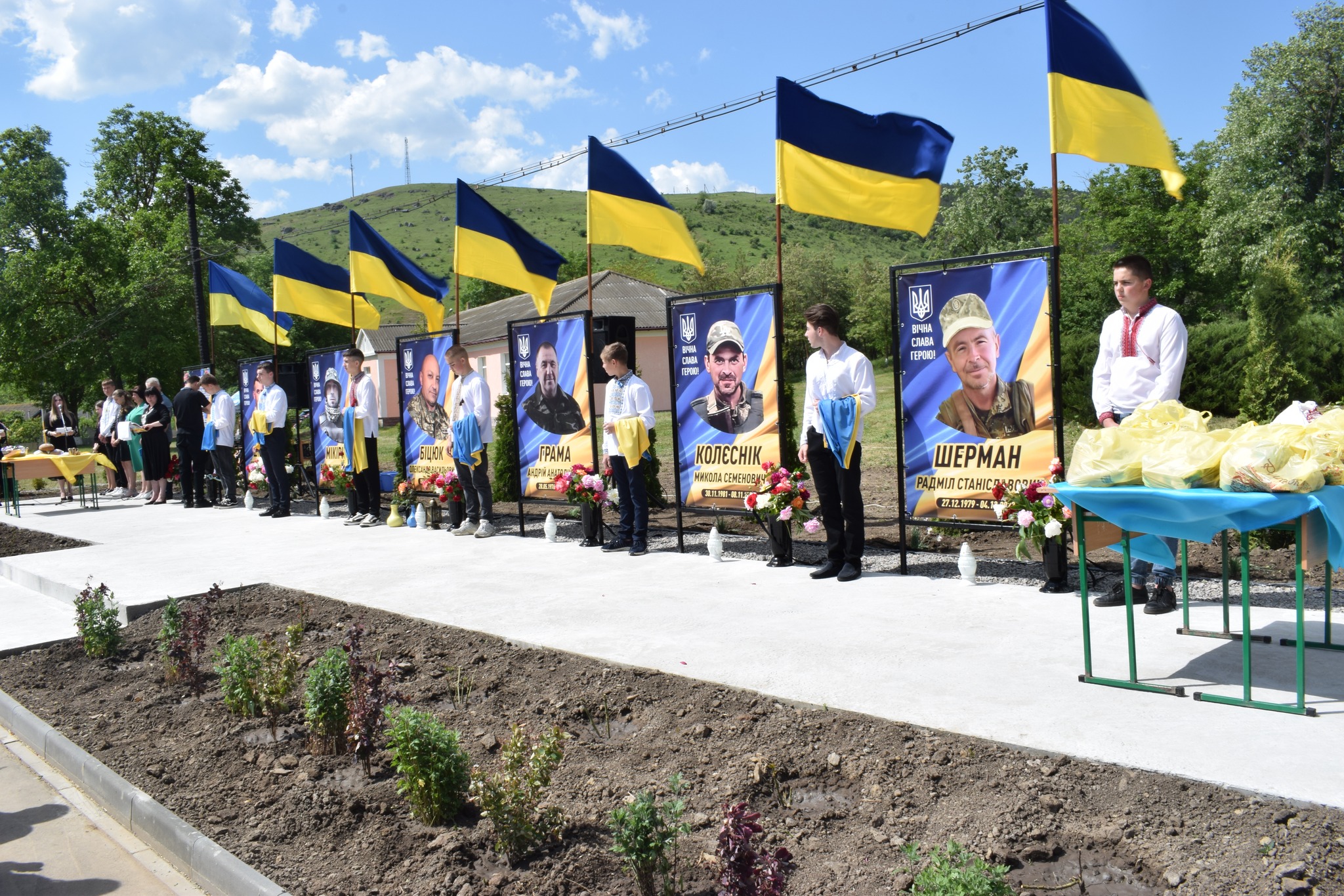У селі Василівка майорять синьо-жовті стяги над світлинами полеглих… Петра Шкути, Василя Мікіріна, Олександра Біцюка, Радміла Шермана, Андрія Грами, Миколи Колєсніка.