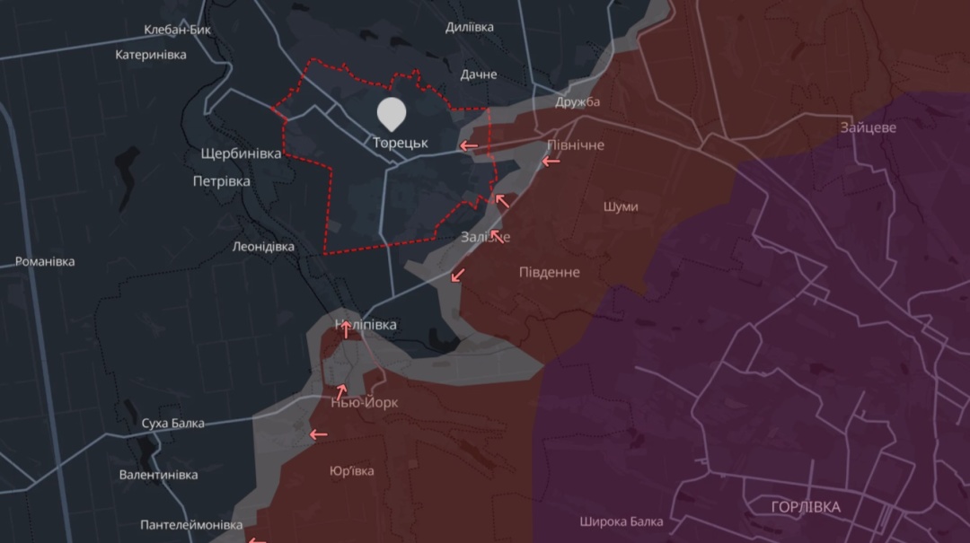 “Ситуація дуже важка. Якщо говорити про Торецьк, то зараз фактично розпочалися міські бої на околицях — в районі Центральної міської лікарні, на перетині вул. Космічна і вул. Центральна. Росіяни намагаються зайти в місто по трасі Т0516, – каже експерт. – Також вони намагаються обійти та взяти під контроль терикони – ДП Шахта «Північна», ДП «Шахта ім. Артема» і ДП "Шахта «Нова», щоби мати можливість зі сходу зайти в Торецьк. А з півдня — зайти в місто через селище Неліпівка”.
