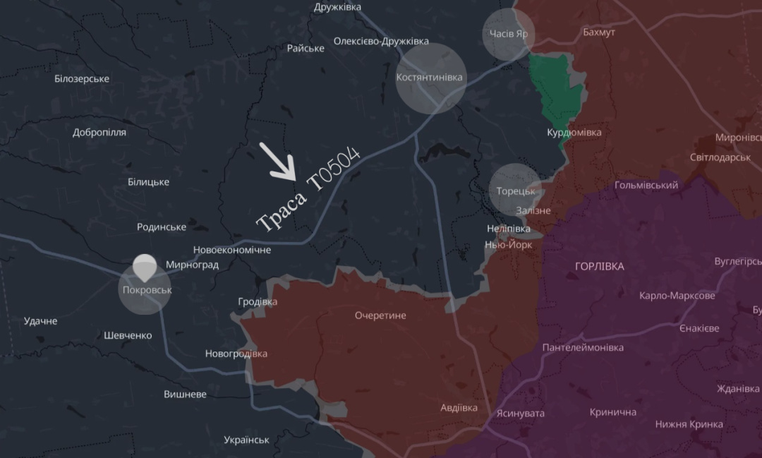 Друга ціль — перерізання “траси життя” Т0504 Покровськ-Костянтинівка, яка йде вздовж лінії фронту і є надзвичайно ефективною для переміщення наших підрозділів та перевезення військових вантажів на різних ділянках фронту, наприклад, до Часового Яру. У разі втрати Т0504 потрібно буде шукати альтернативні шляхи. Звісно, у нас ще є траса Слов’янськ-Краматорськ, є допоміжні дороги. Але їхня пропускна спроможність набагато менша, і вони не дозволяють саме оперативно здійснювати переміщення українських сил та засобів.