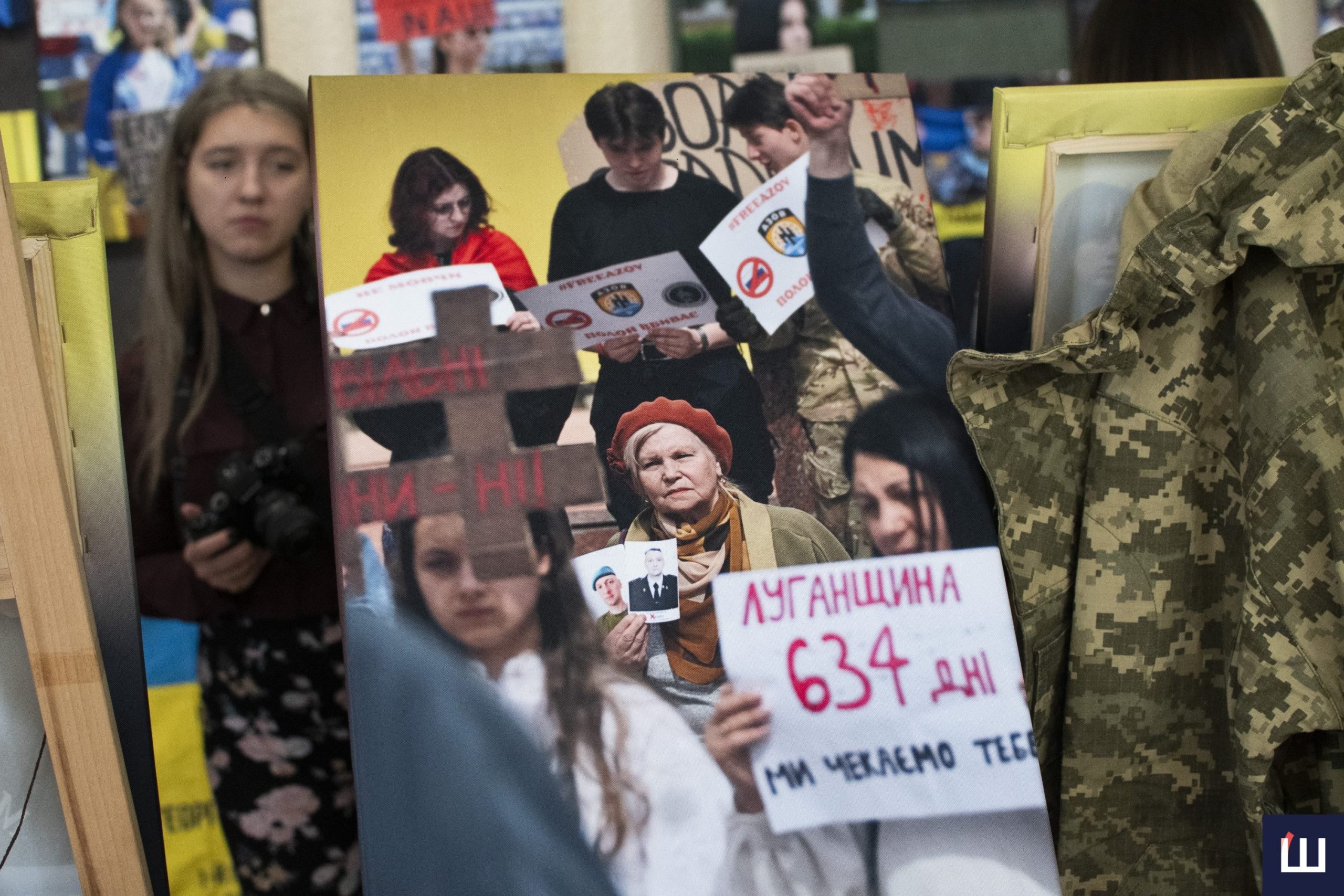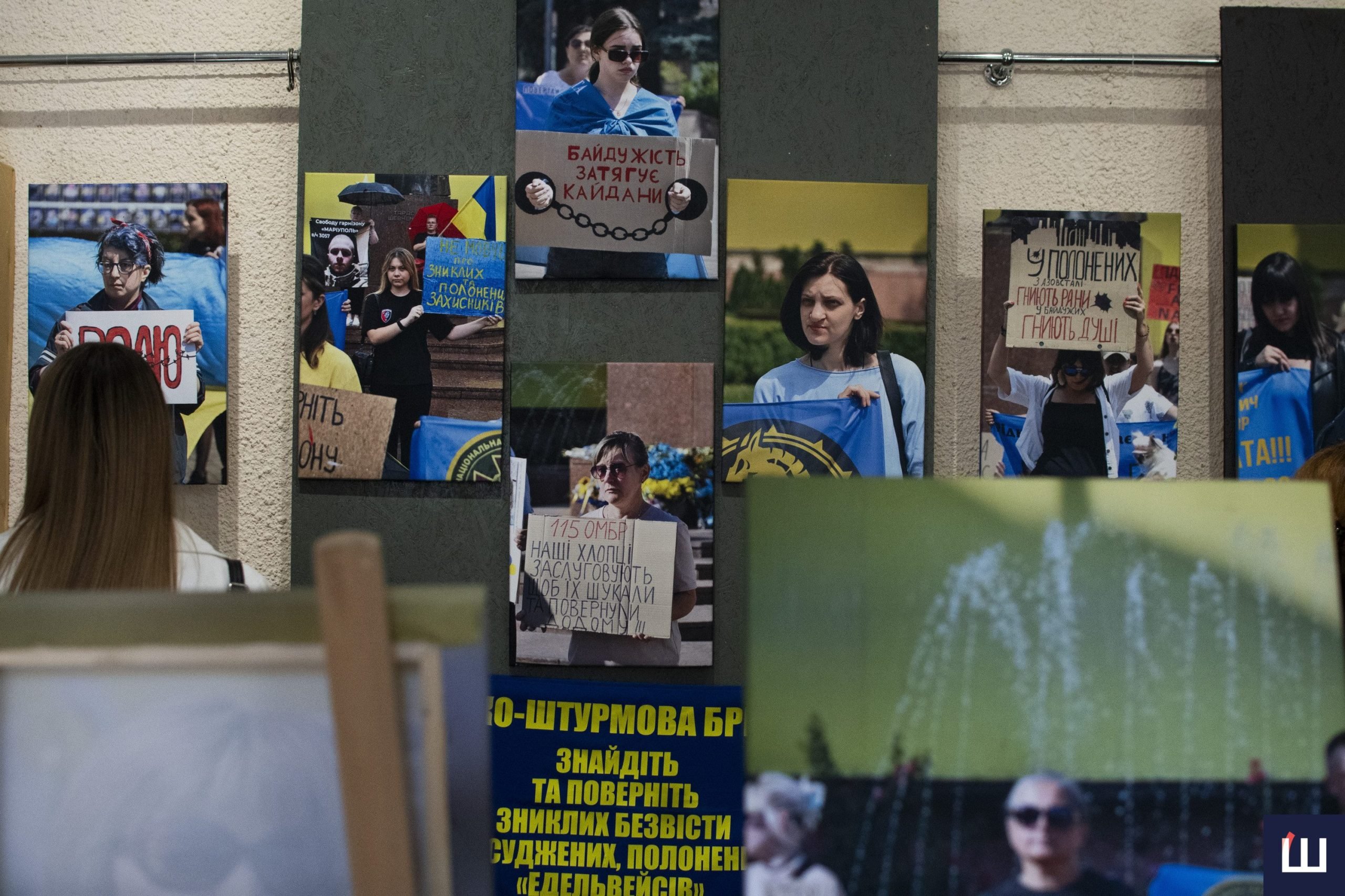 На виставці представили фотографії з акцій на підтримку військовополонених і зниклих безвісти, які проводили в Чернівцях на Центральній площі.