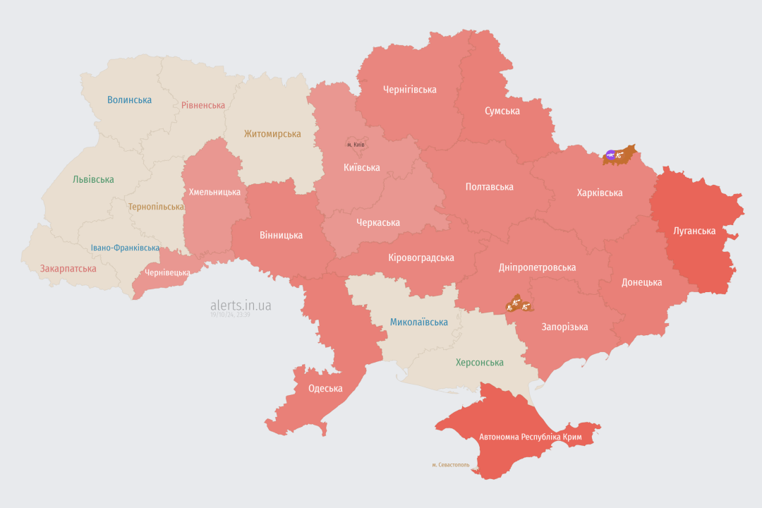 Про це повідомляє Укрінформ із посиланням на мапу повітряних тривог та Повітряні сили ЗСУ.