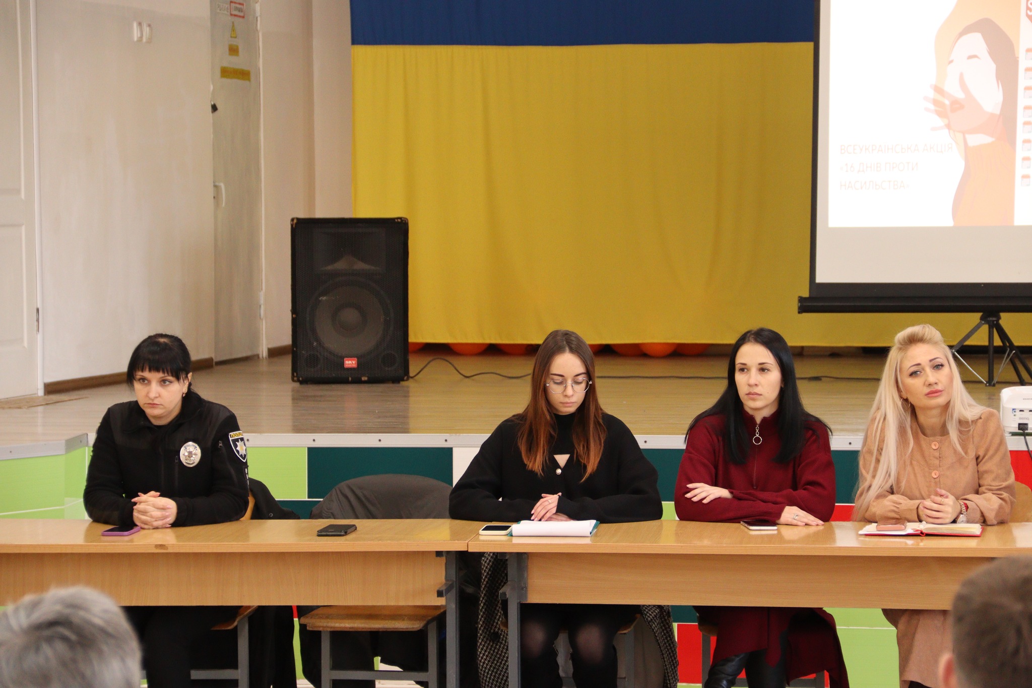 Заклад освіти відвідали старший інспектор сектору ювенальної превенції відділу взаємодії з громадами Дністровського РВП НУНП в Чернівецькій області капітан поліції Ірина Мігалескул, керівник спеціалізованої служби соціально-психологічного консультування осіб, що постраждали від насильства в сім’ї та/або насильства за ознакою статі КУ “Центр надання соціальних послуг” Сокирянської міської ради Аліна Молодовська та головний спеціаліст служби у справах дітей міської ради Олександр Гладкий.