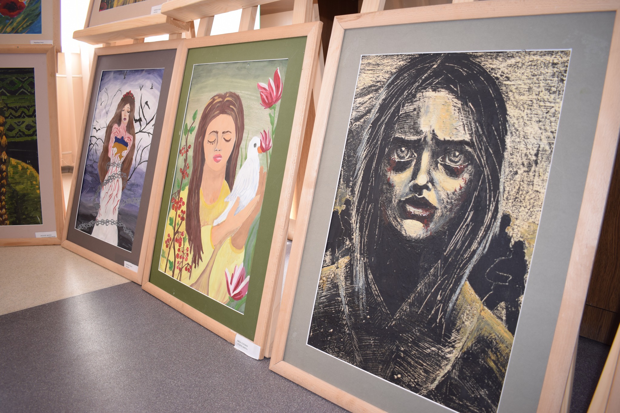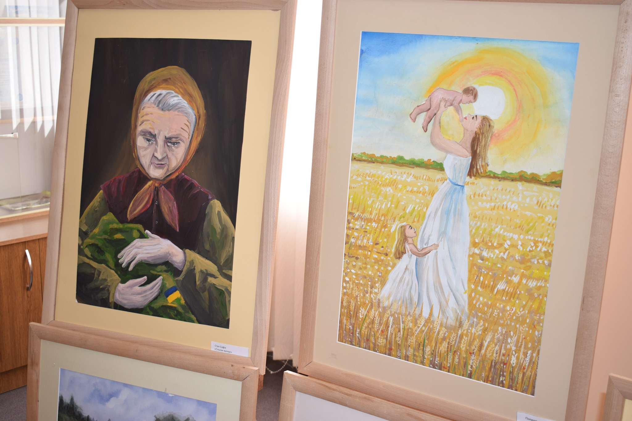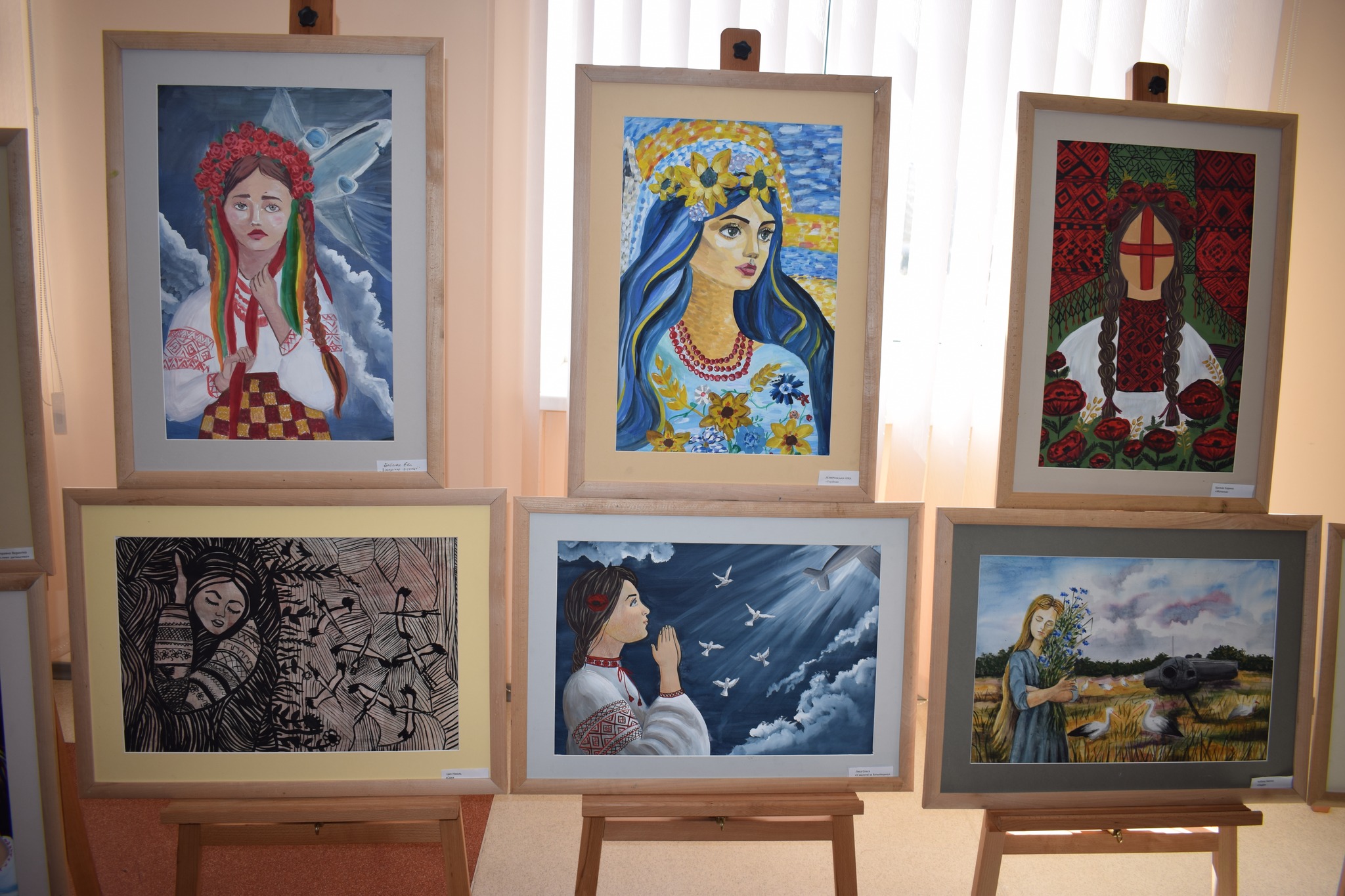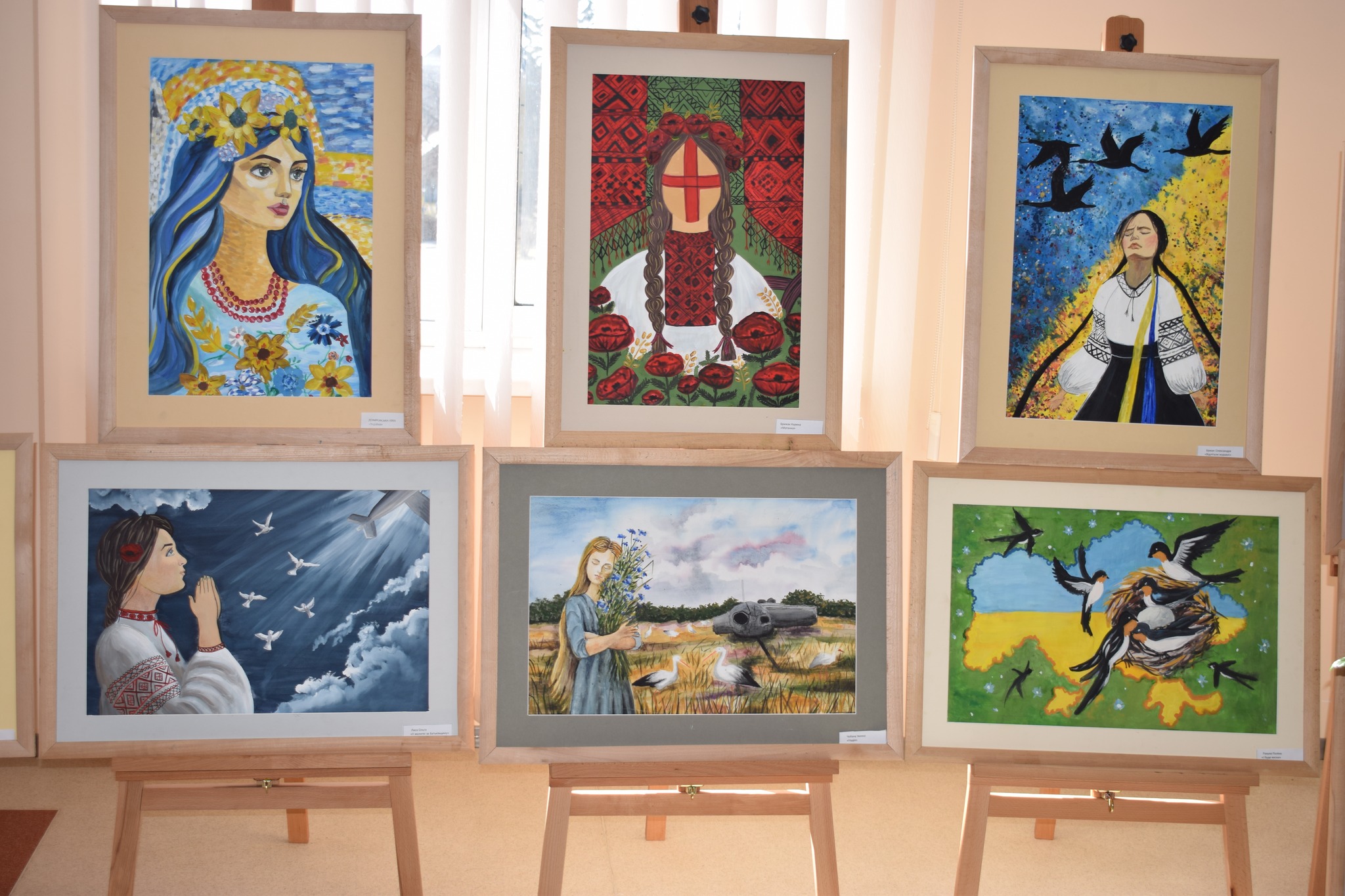 У приміщенні Сокирянської міської ради розмістили особливу виставку під назвою “Жінка-захисниця”, створену талановитими вихованцями Школи мистецтв ім. Михайла Мафтуляка. Кожна картина – це данина шани й подяки жінкам, які стали символом мужності, незламності та любові до України.