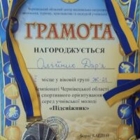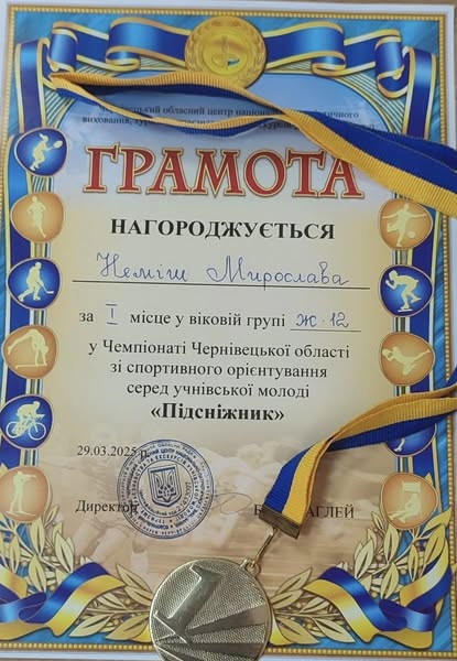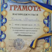Мирослава Неміш – вихованка гуртка «Спортивне орієнтування» позашкільного відділу школи мистецтв – стала переможницею у віковій групі Ж-12. Її тренер – Микола Гонца.