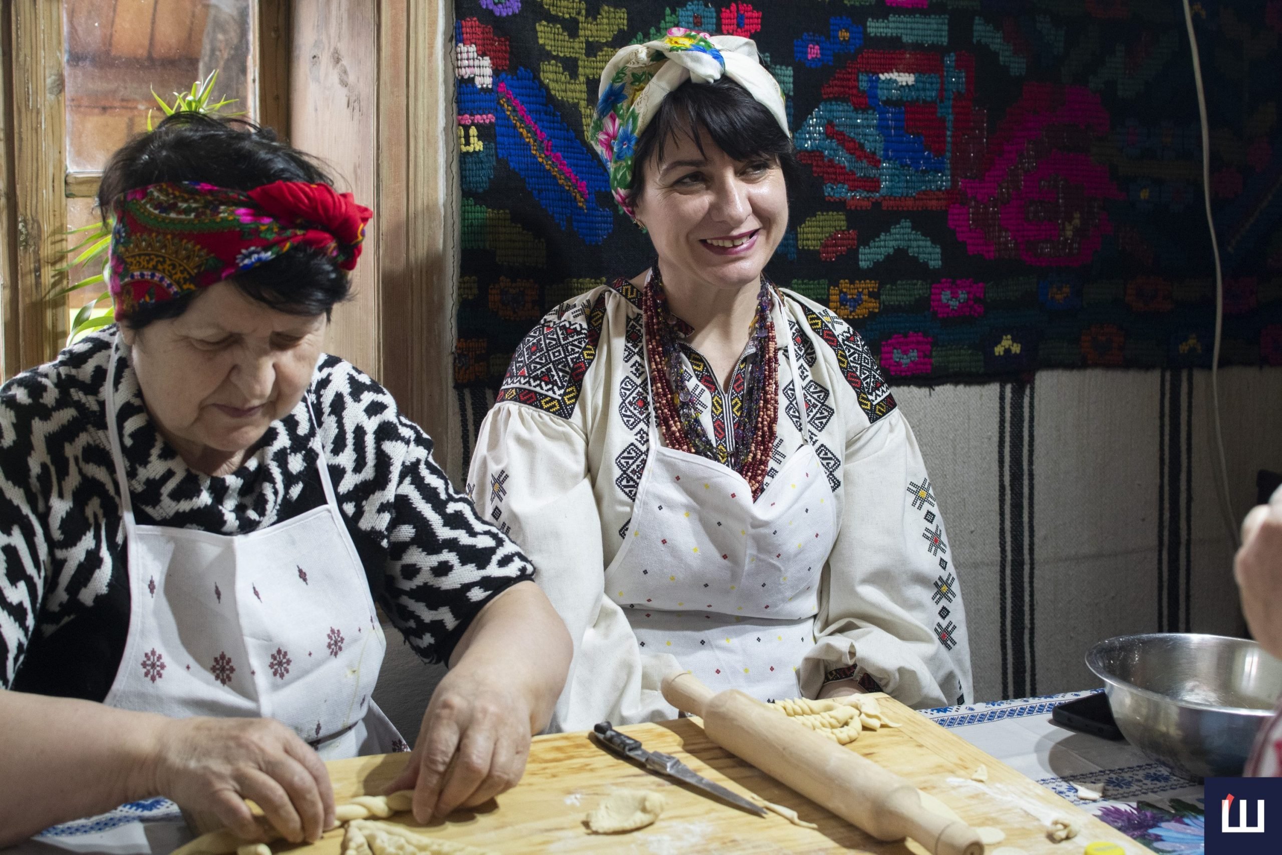 Жінки зібралися у Чернівецькому обласному музеї архітектури та побуту, де відбувається проєкт «Сила Великодня» — щорічний цикл великодніх майстер-класів, що триває весь страсний тиждень. У понеділок — писанкарство, у вівторок — випікання пасок, у середу — знову писанки, а в четвер — знову печуть.