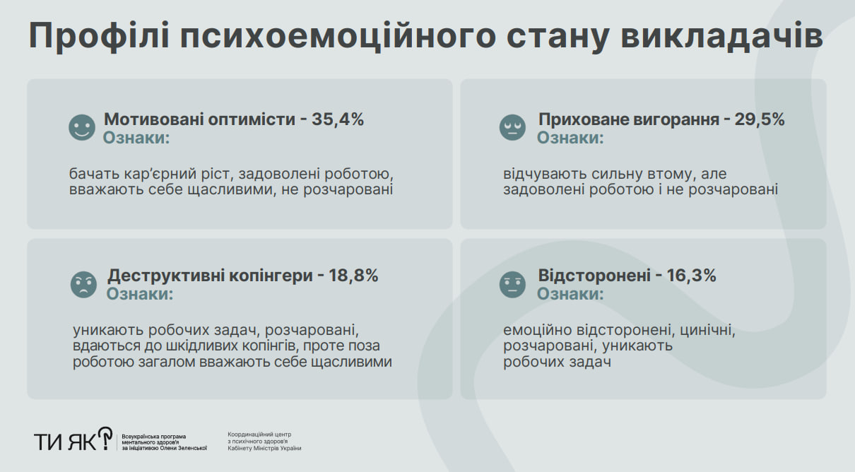 У більшості викладачів українських закладів вищої освіти спостерігається середній або високий рівень професійного вигорання, значна частина студентів скаржаться на виснаження.