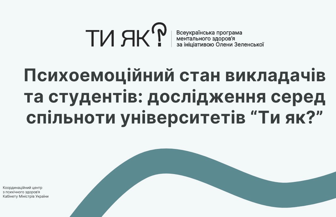 Опитування відбулося в межах проєкту «Спільнота університетів «Ти як?»», що є частиною Всеукраїнської програми ментального здоров’я – ініціативи першої леді Олени Зеленської. Участь взяли понад 1400 викладачів і майже 2300 студентів.