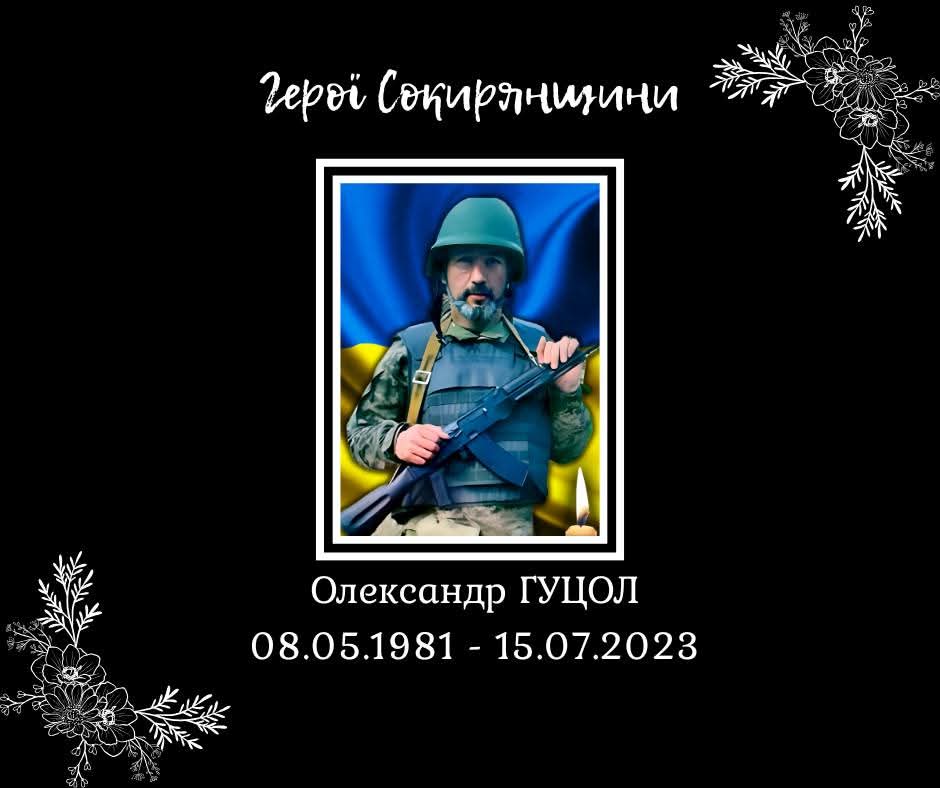 Останній спочинок Олександр Гуцол знайшов на Центральному кладовищі міста Сокиряни.