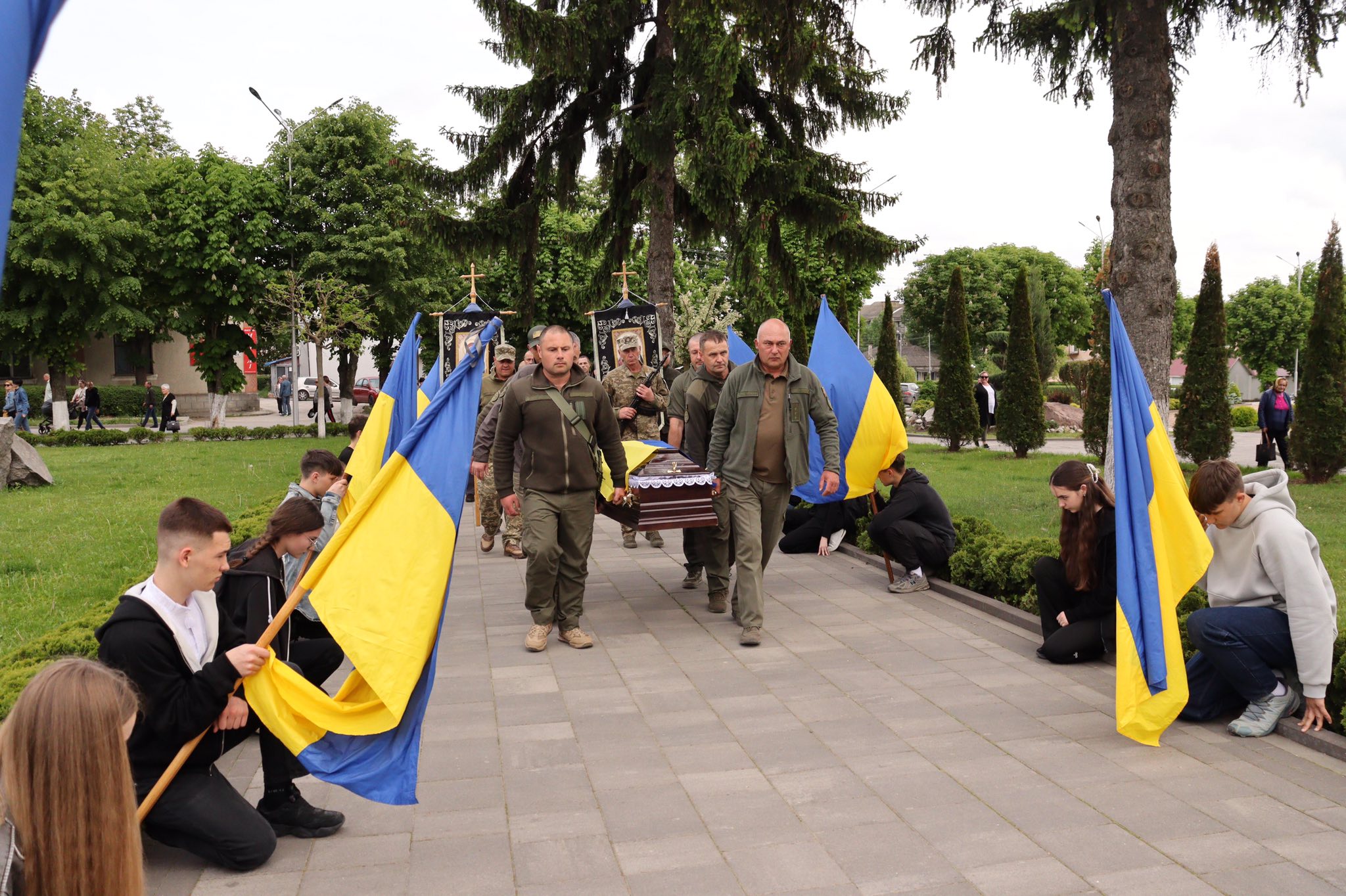Поховали земляка-Героя з усіма військовими почестями на Центральному кладовищі рідного міста Сокиряни. В останню дорогу воїна проводжали на колінах…