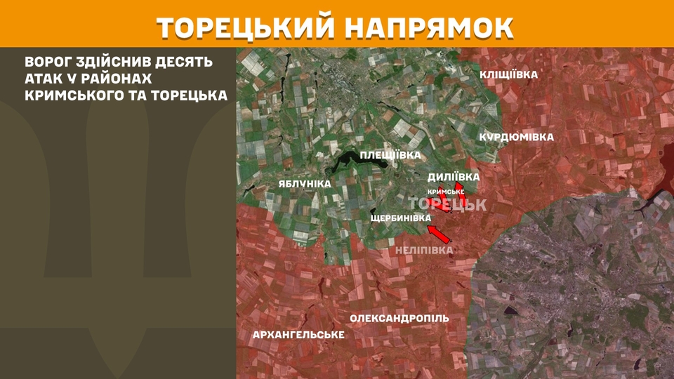 На Торецькому напрямку ворог здійснив 10 атак у районах Кримського та Торецька.