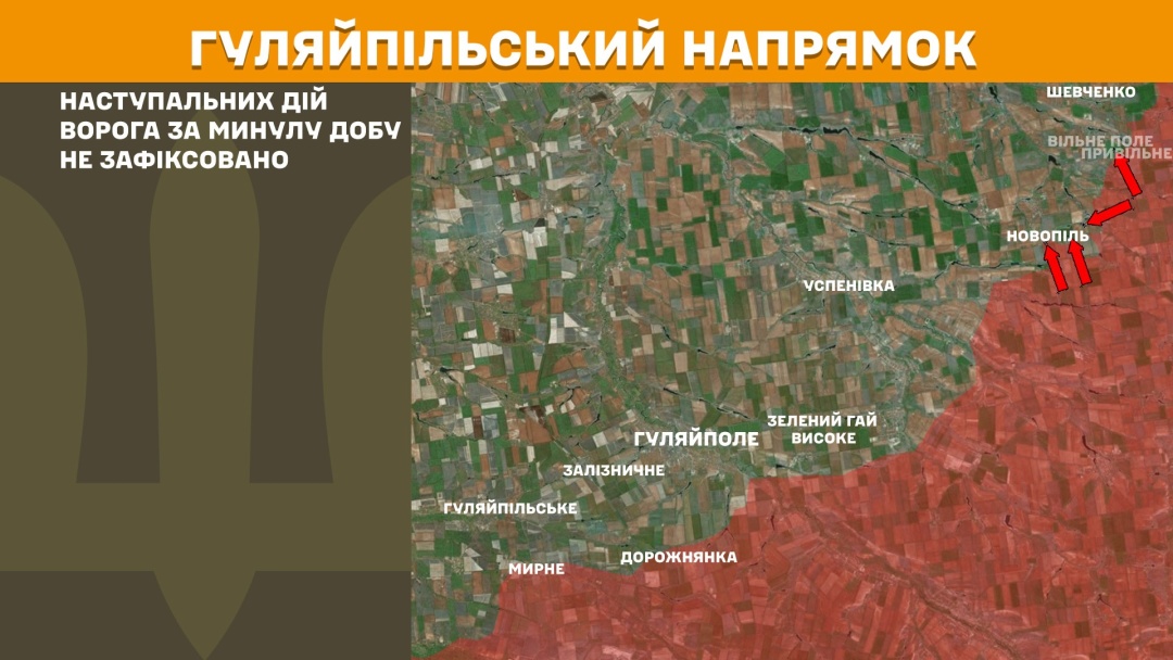 На Гуляйпільському, Оріхівському та Придніпровському напрямках наступальних дій ворога за минулу добу не зафіксовано.